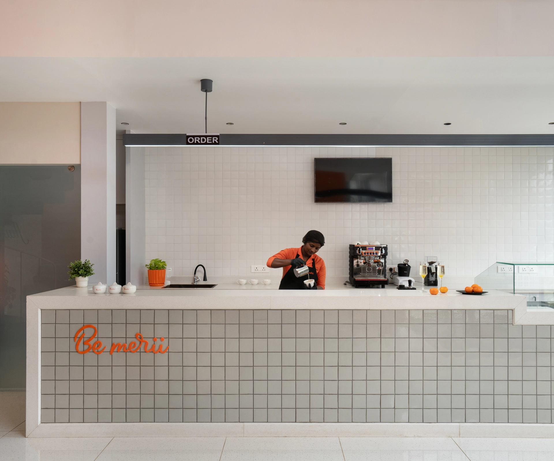 This commitment is perfectly exemplified in our collaboration with BeMerii Dessert Concept Store. This project wasn't just about designing a cafe; it was about meticulously crafting a striking retail experience that speaks volumes about BeMerii's brand. By embracing a minimalist philosophy, we transformed a mere 2 cents of land, nestled amidst the vibrant chaos of a bustling town dominated by industry and commerce, into an uncluttered, inviting destination. The design deliberately uses clean lines, strategic lighting, and a curated palette to highlight the brand's offerings and elevate the customer journey, proving that thoughtful, minimalist design can create a powerful statement even within challenging urban constraints.